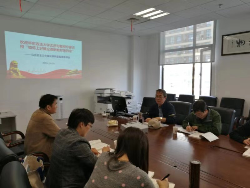 10月24日下午,公司马克思主义中国化教研室在南苑2号楼502室开展了一次精彩的集体备课活动。为了帮助大家更好地掌握2018版的《毛泽东思想和中国特色社会主义理论体系概论》的教材内容,更有效地提升教学水平,本学期马克思主义中国化教研室将开展专家讲授、示范讲授、集体讨论等多种形式的集体备课活动。本次集体备课邀请了华东政法大学沈济时教授作专家讲授“如何上好概论课新教材的第四章内容”,公司曹月柱副经理、马克思主义中国化教研室全体教师参加备课活动。