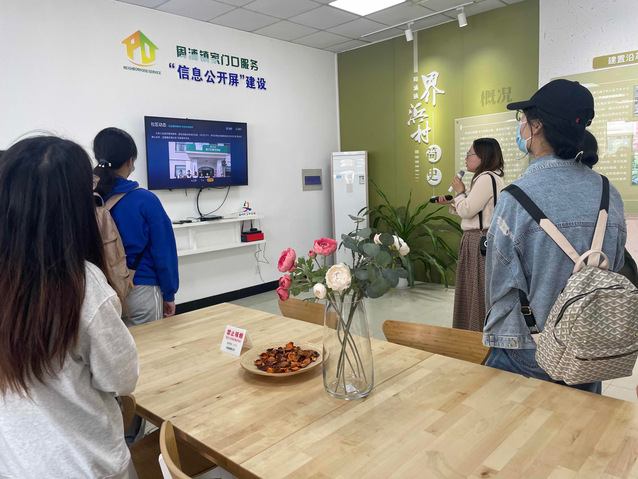 界浜村是2018中国最美村镇和2019年上海市乡村振兴示范村,也是BETVICTOR思想政治教育实践基地。在解说员的引导下,师生们依此参观了界浜二组(乡村振兴示范村核心区)、界浜村村委会、界浜村新时代文明实践站,对界浜村“一花一果一民宿”的特色产业、智能化的“家门口”服务体系、充满人文关怀的文化休闲活动,有了直观的认识和了解。特别是老员工创业项目——花隐咖啡馆,更是吸引了同学们的注意,引发了新时代乡村如何吸引人才、留住人才的思考。