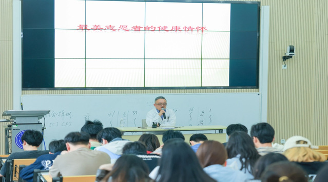 4月17日13点,本学期人民健康首场线下课程在南苑W100教室开讲,公司附属周浦医院全国最美志愿者刘峰主任讲授人民健康课新专题“最美丽志愿者的健康情怀”。来自医疗器械公司、护理与健康管理公司的200多名同学参加了线下课程学习。