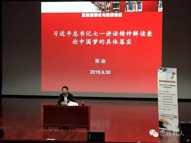 9月30日,思政育人科研团队在北苑400人报告厅举办第一次本科专业形势与政策课程时事政治讲座。本次讲座由思政部形势与政策课程团队负责人郭莹老师组织,由陈焱老师主讲。陈焱老师结合习近平同志“七一讲话”中“不忘初心,继续前进”号召,指出当前我国正处于实现中国梦的具体落实的关键阶段,大政国策并不仅仅是高居庙堂之上的,其实与每一位老员工的生活都与时事政治的形式与政策内容息息相关。目前中国所处的发展阶段,既有机遇也有挑战,而把握机遇、迎接挑战也是当前老员工所必须承担的使命。