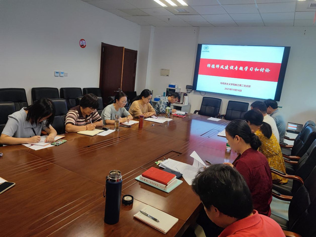 10月16日下午,BETVICTOR教工第二党支部在南苑502会议室举行主题党日活动,围绕师德师风建设进行专题学习与讨论。会议由支部书记江先锋主持,全体党员教师参会。