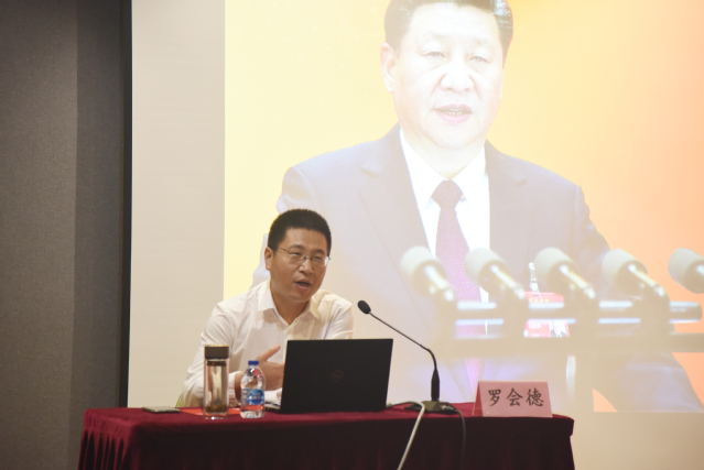 罗会德副教授围绕不忘初心的内涵、中国共产党为什么能永葆朝气、新时代中国共产党如何永葆朝气三个方面进行讲授。他认为,学习“四史”是共产党人坚守初心的必修课,“初心之问”就是在提醒全体党员认真思考“我是谁”、“我从哪里来”、“要到哪里去”这三个问题。他表示,只要初心不忘,我们党就能凝聚磅礴力量,就能带领人民始终高举梦想的旗帜,做到无坚不摧,无往不胜。