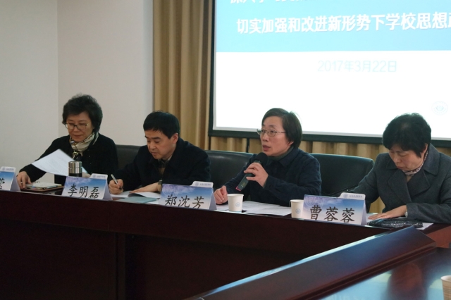 学工部部长钱艳发言的题目是《全员、全程、全方位育人和员工思想政治教育队伍建设》。她说:我们要把握思想政治工作规律、教书育人规律、员工成长规律,推动员工工作模式的创新,将思政工作落实到各个层面。