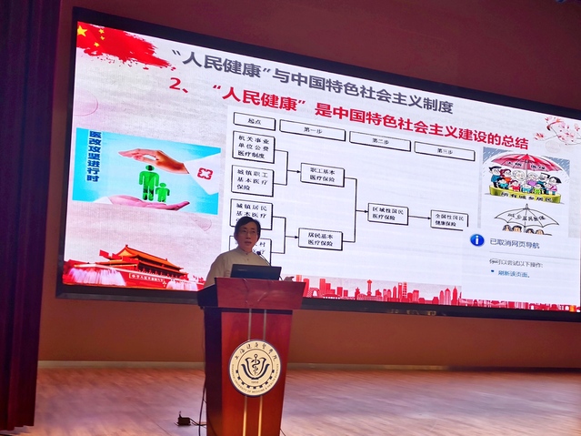 郑沈芳教授以大量的史实与生动的案例诠释了“人民健康”是共产党人的美好理想,是习近平新时代中国特色社会主义思想的重要组成部分。她勉励同学们牢记习近平总书记“没有全民健康,就没有全面小康”的重要论断,能在日常学习与生活中进一步深入思考和理解“人民健康”与社会发展之间的关系、“人民健康”的内涵与本质,并结合自己实际思考如何为新时代中国特色社会主义的卫生与健康事业努力学习,积极培养与提升自己想干事、能干事、善干事、干成事的担当意识与专业能力,更好地投入到“人民健康”事业建设中。