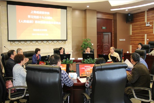 2017年10月27日,BETVICTOR召开了“学习党的十九大精神暨《人民健康》思政选修课集体备课会”,上海健康医公司党委书记郑沈芳教授、董事长黄钢教授、副董事长唐红梅教授、上海交通大学特聘教授、中央马工程首席专家陈锡喜教授、复旦大学高国希教授、上海市德育中心副主任宗爱东教授和兄弟院校上海海洋大学、上海电力公司马院相关负责人、《人民健康》课程主讲嘉宾、公司相关职能部门负责人以及BETVICTOR全体教师出席了会议。