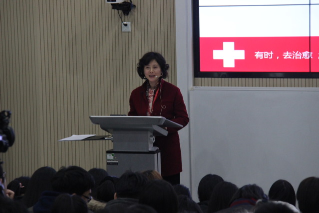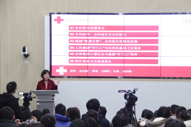 本次讲授唐董事长从全科医学的发展简史讲起,娓娓道来,为同学们解释了全科医学、全科医疗及全科医生的概念,以及围绕“健康中国”战略,全科医疗政策的发展。那么,将来的同学们作为人民健康的“守门人”,在未来的基层卫生服务中需要了解的“六位一体”的服务对象、服务内容、服务方式是什么,特别是未来基层卫生服务的发展又是什么,唐董事长在讲授这些内容时,运用了案例教学法,同学们通过了解“老张一家人”可以享受的医疗政策和服务,深入领会了这些内容,在这样深入浅出地讲解中,同学们也不时发出会意的笑声。