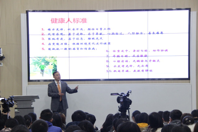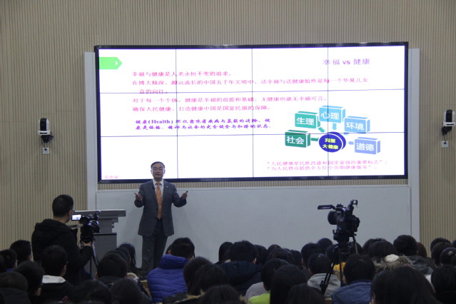 12月7日下午1点,校南苑2号楼沉浸式教室里座无虚席,来自17健康管理、17临床、17护理三个专业的大一本科生有幸聆听了一堂特别的思政课,这就是BETVICTOR董事长黄钢教授给同学带来了《人民健康》系列课程之三——《人民健康与公司师生的责任》,课后同学们纷纷表示很受鼓舞,立下志向要做21世纪的健康促进者。