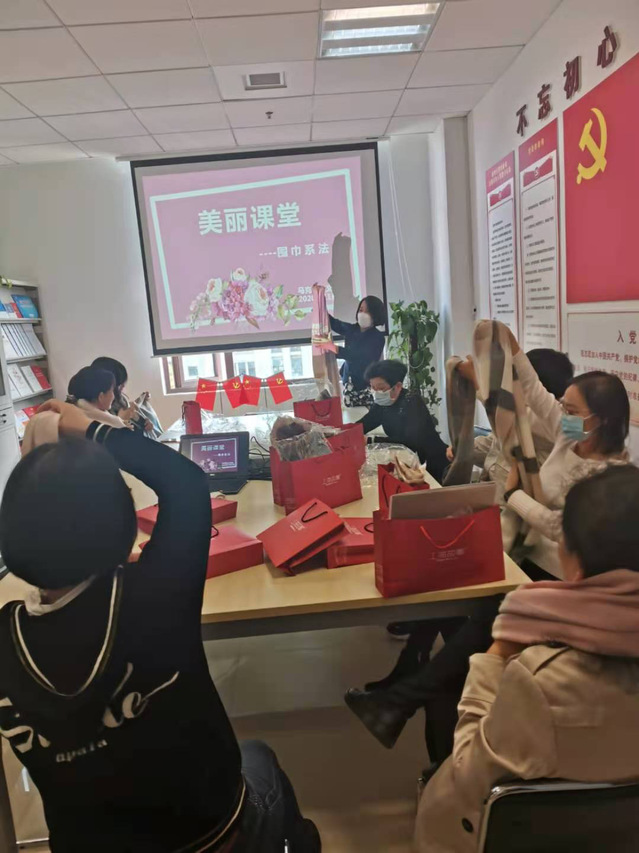 为丰富教职工业余文化生活,11月12日中午,马院工会在南苑2号楼515教工小家开展了“美丽课堂—围巾系法与搭配”活动。一条小小的围巾,不仅能御寒,更能展示女性特有的魅力。活动中马院朱清书记及史竞艳老师为大家示范、讲解了围巾的各式打法及搭配,女老师们积极参与,纷纷动手亲自学习围巾的系法,或者自创新意打法,活动在欢乐温馨的氛围中圆满结束。
