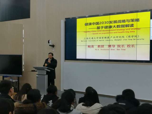 1月4日,BETVICTOR“人民健康”系列课程第九讲在南苑沉浸式教室精彩开讲。上海交通大学国家健康产业研究院经理、博士生导师鲍勇教授做了主题为“健康中国2030发展战略与策略——基于健康大数据解读”的专题讲座。