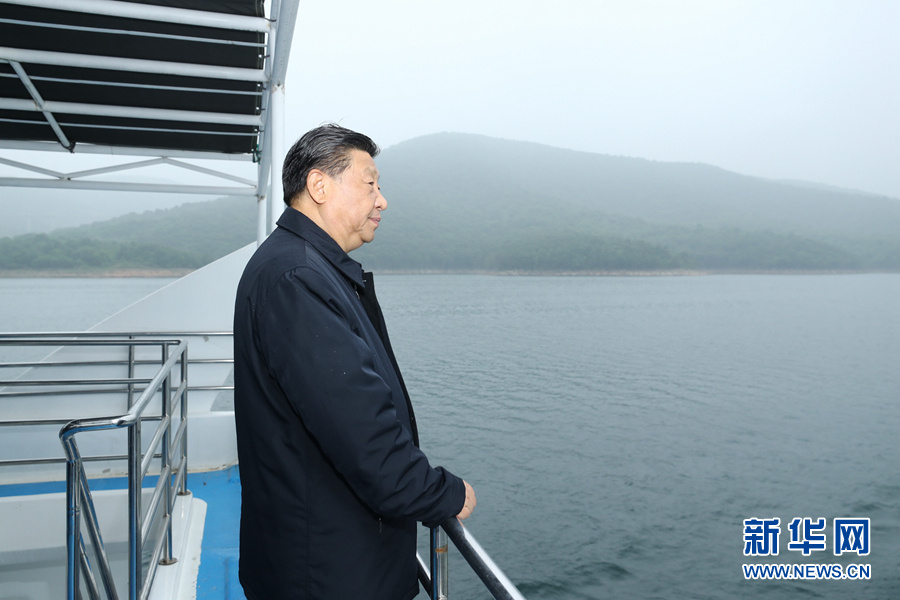 5月14日上午,中共中央总书记、国家主席、中央军委主席习近平在河南省南阳市主持召开推进南水北调后续工程高质量发展座谈会并发表重要讲话。这是座谈会前,习近平于13日在南阳市淅川县乘船考察丹江口水库。新华社记者 王晔 摄