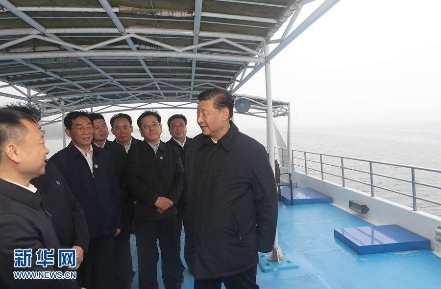 5月14日上午,中共中央总书记、国家主席、中央军委主席习近平在河南省南阳市主持召开推进南水北调后续工程高质量发展座谈会并发表重要讲话。这是座谈会前,习近平于13日在南阳市淅川县乘船考察丹江口水库,听取有关情况汇报。新华社记者 王晔 摄