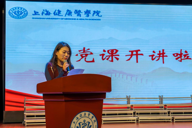 诗歌朗诵《聆听历史回想,走好新时代的长征路》,这首诗歌采用过去与现在对话的形式,展现了红军长征一路上的艰难困苦,讴歌了红军战士们的顽强意志力。高亢激越的内容结合感情炽烈、语流跌宕的朗诵,感悟中国共产党始终如一的初心。舞台上,代表过去的红军、代表当代的青年,一起举起右手,庄严宣誓,重温入党初心。这一幕,激发了难忘、庄严、震撼,让此次党课进入了高潮。