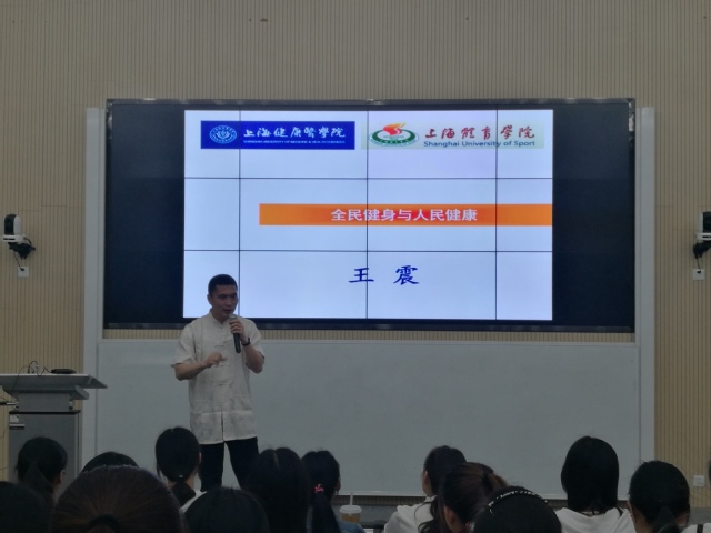 人民健康课“全民健身与人民健康”开讲 2018年5月3日晚上6点,人民健康思政选修课“全民健身与人民健康”在南苑W100沉浸式教室顺利开讲,中国武术博物馆的副馆长、上海体育公司副教授王震博士应邀为同学们进行专题讲授。 习近平在全国卫生与健康大会上强调,把人民健康放在优先发展战略地位,努力全方位全周期保障人民健康。讲座中,王教授为大家认真解读了《健康中国2030年规划纲要》第六章“提高全民身体素质”,王教授结合大量的案例和科研数据表明体质健康的重要性以及运动对健康的积极作用。其次,王教授也给大家分析了当今社会体医融合的必然趋势,如长期练习太极可改善周围神经病变人群的身体运动能力。最后,王教授介绍了中国传统的健身之道——健身气功,如易筋经、五禽戏、六字诀、八段锦、马王堆导引术等健身气功法。健身气功是以增进身心健康为目的,以自身形体活动、呼吸吐纳、心理调节相结合为主要运动形式的民族传统体育项目,是中华悠久文化的组成部分。王教授告诉大家要科学认识健身气功的作用,掌握健身气功的锻炼要领。 总之,整个教学过程,王教授通过大量案例、以身示范、互动启发等教学方式,使整个课堂气氛活跃。王教授也希望大家能加强健身运动,减少学习压力,享受健康幸福人生。(BETVICTOR马小红)